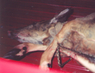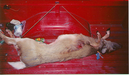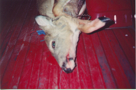 threw a round at the poor yearling buck. The buck was struck in the neck and
